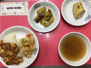 照り焼きチキン 秋のマセドニアサラダ コーンクリームスープ |