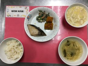 ぶりのごま照り焼き 白和え かぼちゃ煮 もやしの味噌汁 |