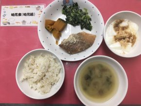 赤魚のおろし煮 青菜のたらこマヨネーズ かぼちゃ煮 きのこの味噌汁 |