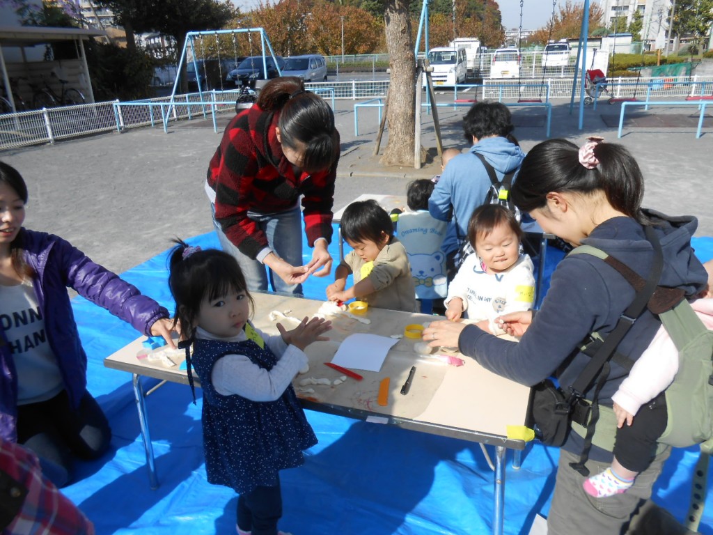 11月の出前保育。今回は、小麦粉で作った粘土で遊びました。
