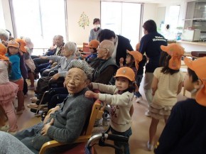 歌や踊りを披露し、肩たたきや手などを揉んであげ、おじいちゃん・おばあちゃんもとても喜んで