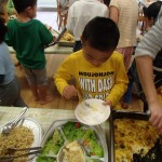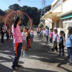 卒園児のお姉さんお兄さんが来園して卒園児交流会もありました。全部で1年生から5年生まで60人以上の参加でとても楽しい時間でした。給食の豚汁もおいしかったね。ゲームやドッチボールをして、優勝チームは賞品ももらいました。みんな大きくなったね。